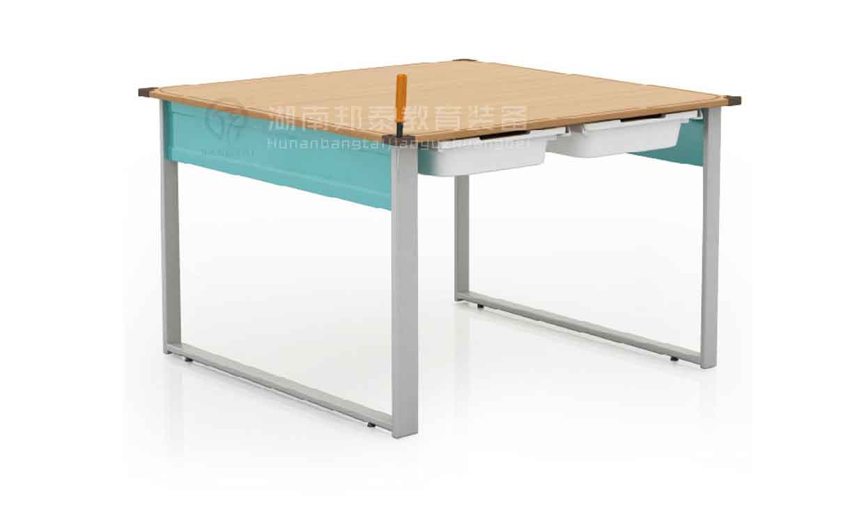 | 2 | 金工、木工學生操作臺 | 臺面:采用40mm樟子松實木板,干燥處理; 桌面鋪設3mm透明橡膠防護墊;中間配有防護網;配有帶蓋板電源插座兩組,提供220V電源,插座引入線埋于臺面下,不能外露。桌身采用50*30方鋼烤漆骨架,長方向兩側各有工具抽屜,帶有兩個存放柜,桌腳帶固定墊。(8人一組) | 7 | 張 |