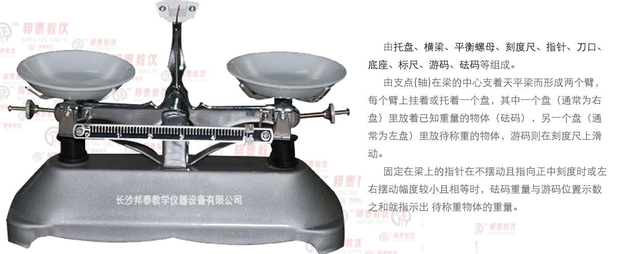 長沙邦泰教學儀器設備有限公司 系列托盤天平供工礦企業、醫藥衛生、農業、化工、各大私立、土豪學校等單位作衡量教學之用。